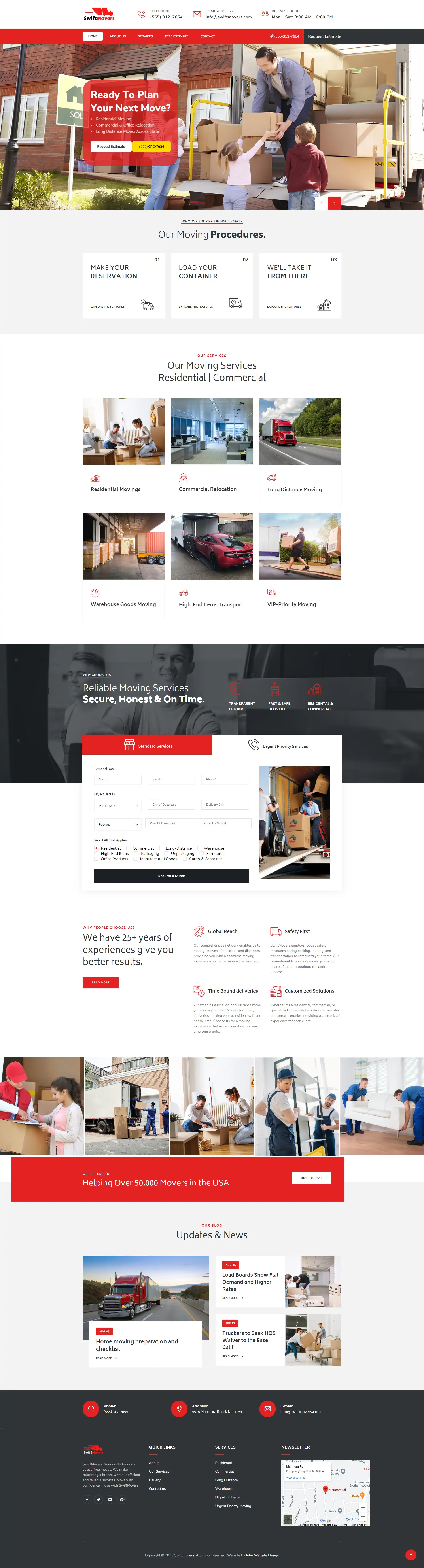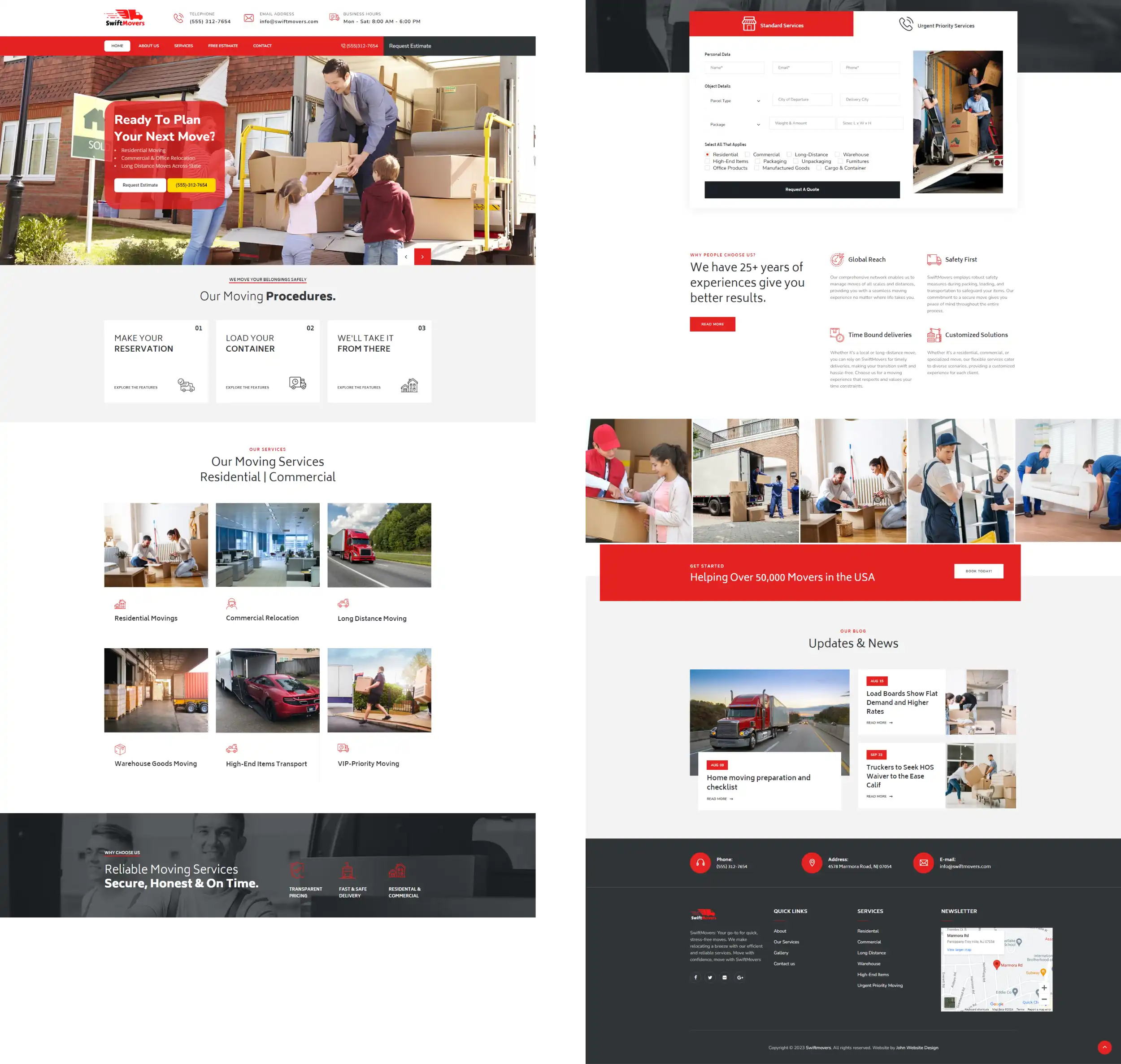 我们用现代而吸引人的布局替代了陈旧的设计,与Swiftmovers的品牌形象相契合.我们优先考虑了手机移动响应性,优化了网站以确保在智能手机上无缝运行.此外,鉴于高峰时段电话接听员不足的问题,我们实施了定制的服务请求表单.这些表单不仅高效地处理和传入服务工作的请求,还显著减少了投诉和错失的机会.重新设计的网站现在更加简单有序,解决了客户查找服务信息的困扰.